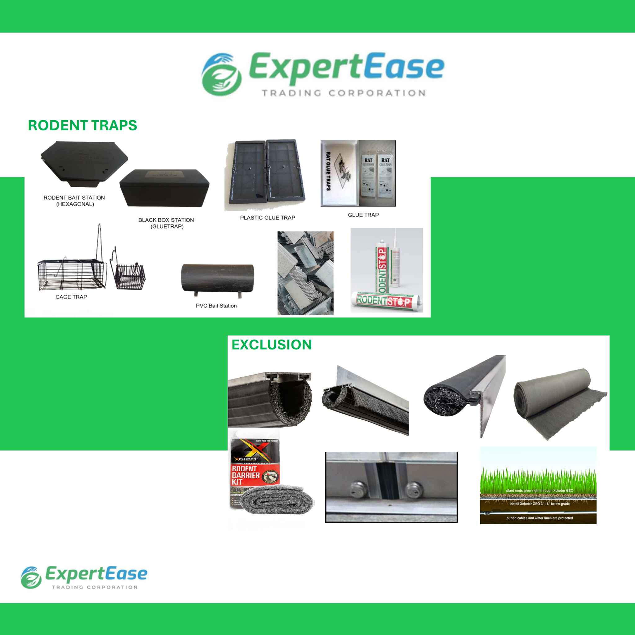 1. Rodent Bait Station (Hexagonal) 2. Black Box Station (Gluestrap) 3. Plastic Glue Trap 4. Glue Trap 5. Cage Trap 6. PVC Bait Station